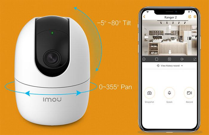 Camera IPC-A22EP hỗ trợ điều khiển xoay trái, xoay phải, lên, xuống từ xa qua điện thoại. Góc quét ngang (PAN) là 355° tốc độ 100° /s, quay dọc lên xuống 90° 100° /s.