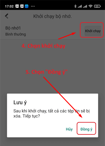Sau đó xuất hiện màn hình cho phép ta khởi chạy lại thẻ nhớ.