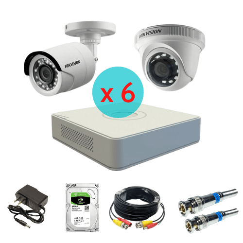 Các thiết bị đi kèm trong combo trọn bộ 6 camera HIKVISION đã đầy đủ. Quý khách mua về tự lắp chỉ cần cắm vào là chạy. Trọn bộ bao gồm các thiết bị vật tư sau: